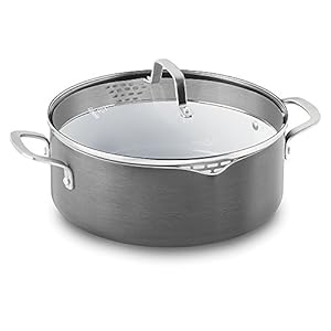 Calphalon 1937382 Classic Ceramic Nonstick Dutch Oven with Cover, 5 quart, Grey/White