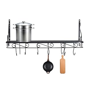 Wall Mounted Pots and Pans Rack. Pot Holders Wall Shelves with 12 Hooks. Kitchen Shelves Wall Mounted with Wall Hooks…