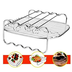 Cedmon Air Fryers Double Layer Rack with 4 Skewers 304 Stainless Steel Baking and Cooling Steaming Rack Accessories…