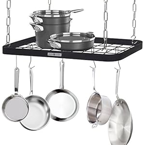 JackCubeDesign Ceiling Mount Grid Pot Pan Rack Hanger Organizer Kitchen Storage Shelf Tray Holder with Utility 8 Hooks…