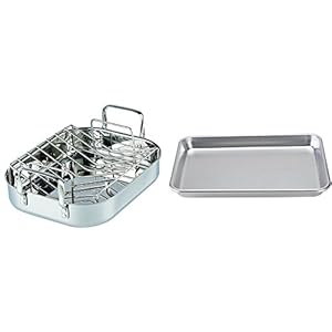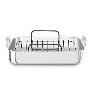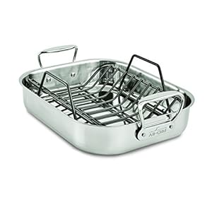 All-Clad E752S264 Stainless Steel Dishwasher Safe Small 11-Inch x 14-Inch Roaster with Nonstick Rack Cookware, 14-Inch…