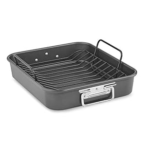 Cook N Home 16 by 12-Inch Pan, Black Nonstick Bakeware Roaster with Rack