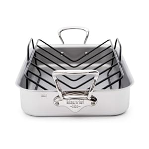 Mauviel Made In France M’Cook 5 Ply Stainless Steel 15.7 by 11.8-Inch Rectangular Roasting Pan and Rack with Cast…