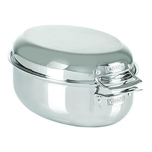 Viking 3-Ply Stainless Steel Oval Roaster with Metal Induction Lid and Rack, 8.5 Quart