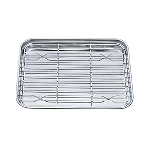 TeamFar Toaster Oven Pan Tray with Cooling Rack, Stainless Steel Toaster Ovenware broiler Pan, Compact 8”x10”x1…