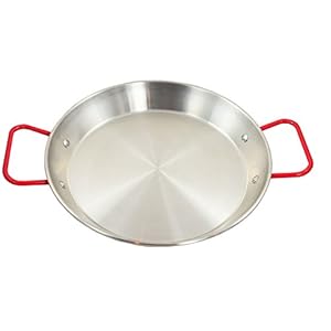 Sunrise Stainless Steel Paella Pan with Red Handle (8″)