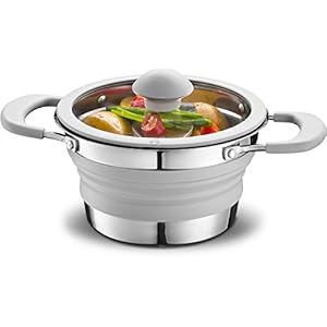 Gourmia Collapsible Pot – Stainless Steel, Silicone and Glass Lid – for Gas and Electric Stove Cooking – Great for…