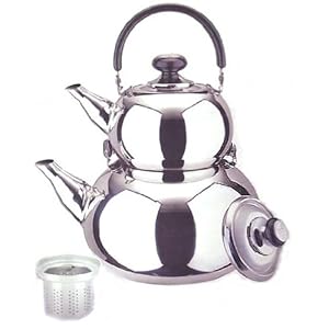 18/10 STAINLESS STEEL TURKISH SAMOVAR STYLE DOUBLE TEA KETTLE & POT by overstockedkitchen