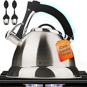 Whistling Tea Kettle with iCool – Handle, Surgical Stainless Steel Teapot for ALL Stovetops, 2 FREE Infusers Included, 3…