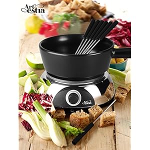 Artestia fondue pot Set,1500W fondue set electric,Electric Ceramic chocolate Fondue Set with 6 Fondue Forks Temperature…