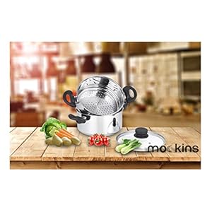 mockins 3 Piece Premium Heavy Duty Stainless Steel Steamer Pot Set Includes 3 Quart Cooking Pot , 2 Quart Steamer Insert…