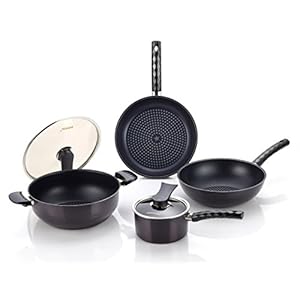 Happycall 5 Layer Diamond Nonstick Cookware Set, PFOA-Free, Dishwasher Safe, 6-piece Set, Dark Brown