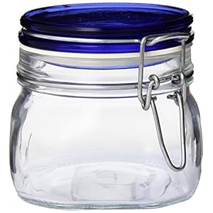 Bormioli Rocco Fido Square Glass Canning Jar with Blue Lid, 0.5 Liter (Pack of 2)