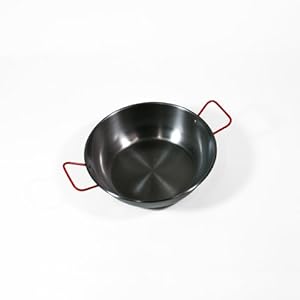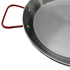 Garcima Paellera Polished Steel Paella Pan with Red Handles -22cm