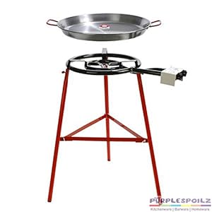 Garcima Tabarca Paella Pan Set with Burner, 20 Inch Carbon Steel Outdoor Pan and Reinforced Legs Imported from Spain (14…