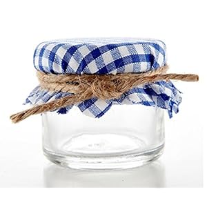 Nakpunar 12 pcs 4″ Navy and White Gingham Fabric Jar Covers with Hemp Twine Ties