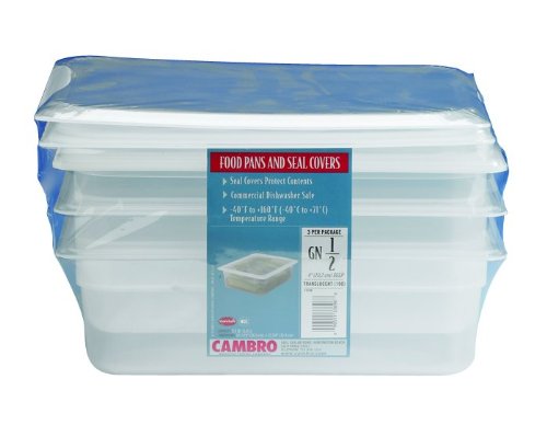 Cambro Set, 6.3 QT, 3 Pack, Translucent Food Pans and Seal Covers, 1/2 Size, 4 Inch Deep