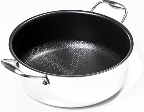 100-percent scratch resistant, hybrid stainless steel/nonstick casserole with lid; 9.5-inch diameter, 4 quart