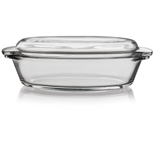 Libbey Baker’s Basics Glass Oval Casserole Baking Dish with Cover, 1.6-quart