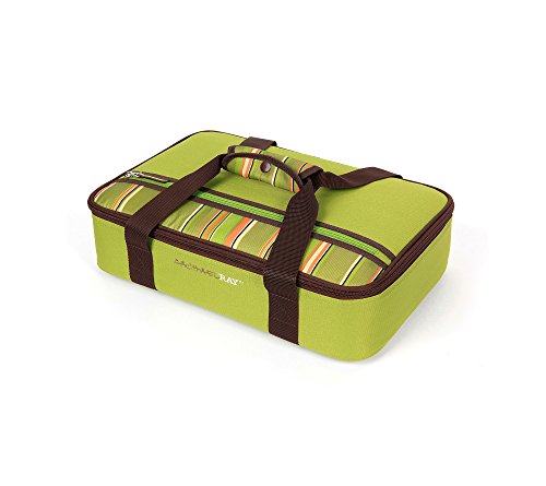 Transporting hot or cold foods or baked goods to feed a crowd is easy with the insulated Lasagna Lugger. Constructed of built-to-last, easy clean 600 denier material and featuring SuperFoam insulation and an Ultra Safe easy clean lining, this carrier is designed to fit most 9″ x 13″ baking dishes (not included) and keeps food hot or cold for hours!