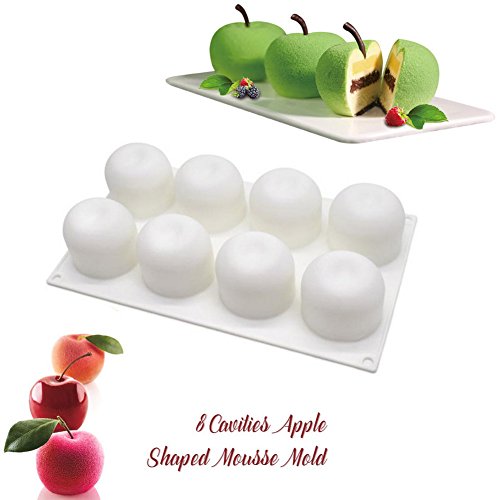 SAKOLLA Apple Shape Mousse Silicone Mold, 8-Cavity Non stick Cake Mold /French Dessert/ Pastry Baking/Chocolate Mold…