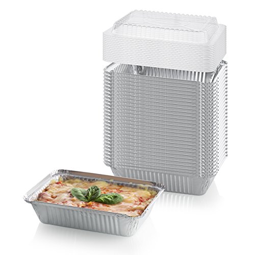 50-Pack Heavy Duty Disposable Aluminum Oblong Foil Pans with Lid Covers | 100% Recyclable Tin Food Storage Tray | Extra…