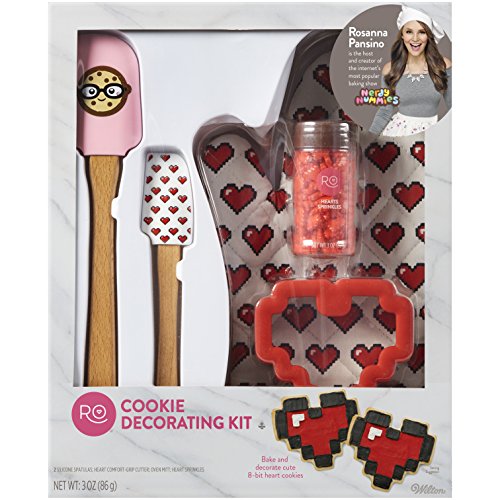 Bake adorable 8-bit heart cookies with this Rosanna Pansino Cookie Decorating Kit. An easy and fun way to bake treats for friends and family, this kit comes with an 8-bit heart cookie cutter, two silicone spatulas, 8-bit heart sprinkles and a cute oven mitt covered with even more 8-bit hearts. A great gift for young beginning bakers, this cookie decorating kit is sure to become a favorite