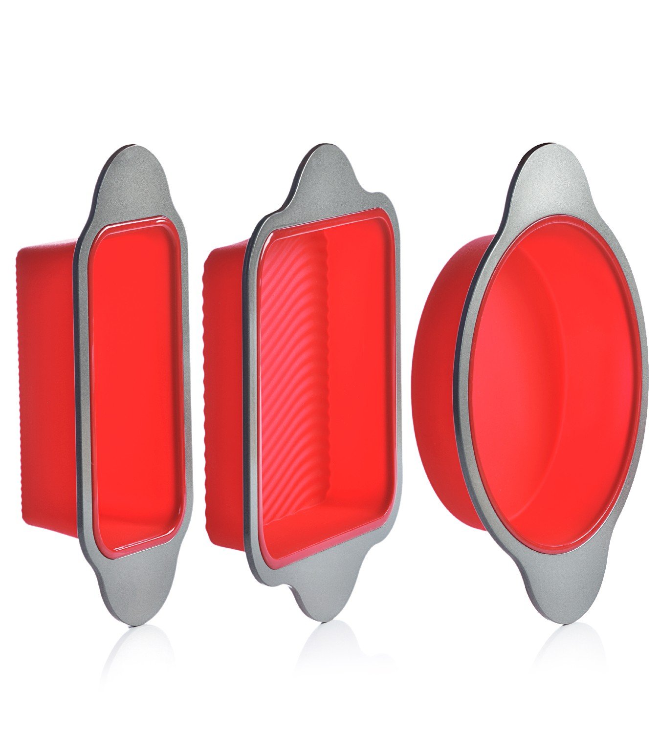 3-IN-1 CONVENIENCE – Ultimate kitchen versatility, bake your favorite treats with this 3-piece professional grade silicone baking mold set: round cake pan, square brownie pan, banana bread / meat loaf pan