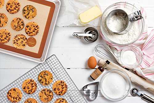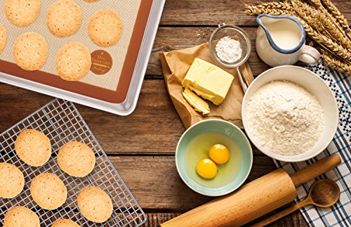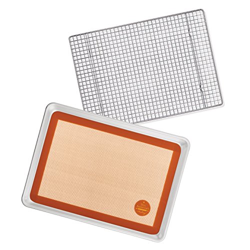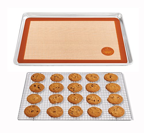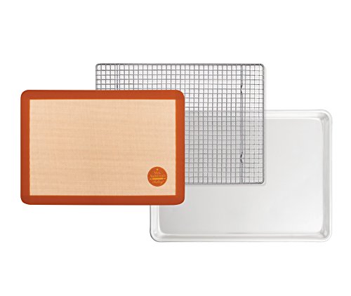 Includes commercial-grade baking Mat, baking pan, and cooling rack; heat safe (to 480-degrees Fahrenheit); FDA and NSF approved