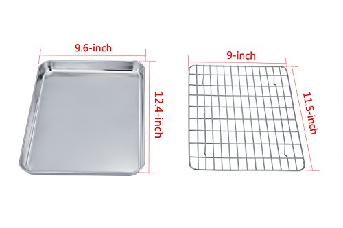 TeamFar Baking Tray and Rack Set, Stainless Steel Baking Pan Cookie Sheet with Cooling Rack, 12.5 x 10 x 1 inch, Non…