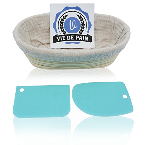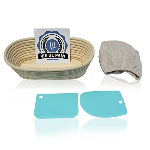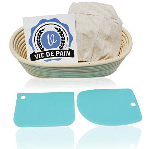 10 inch Oval Banneton Bread Proofing Basket Set- Professional Brotform with Linen Liner – Perfect for Rising Sourdough…
