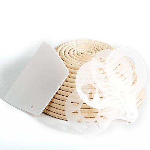 page title icon 15 items Banneton kit – Proofing Basket +10 Artisan Stencils +Bread Lame +Cloth Liner Linen+Bowl Scraper for Bakers…