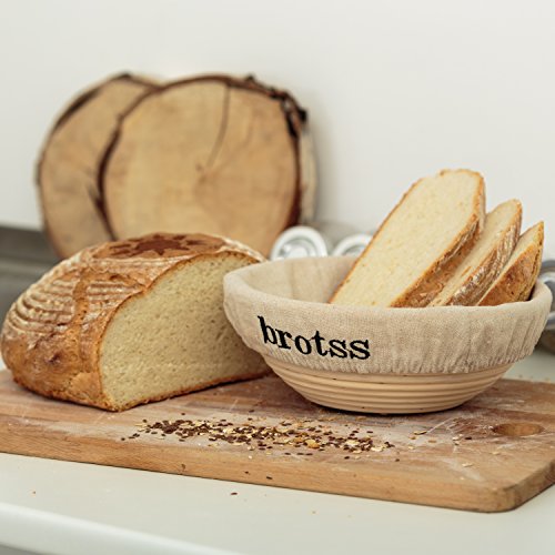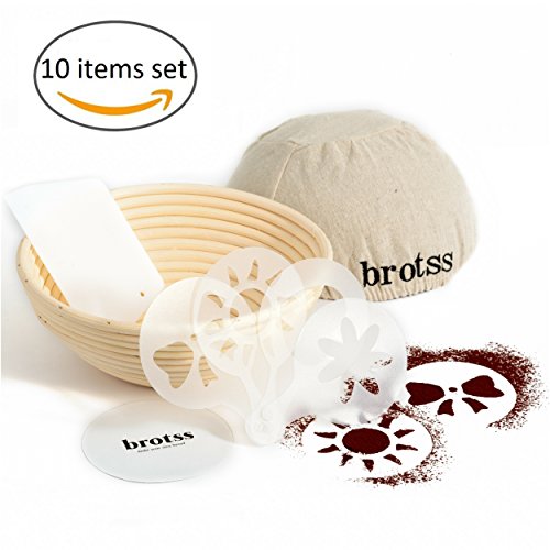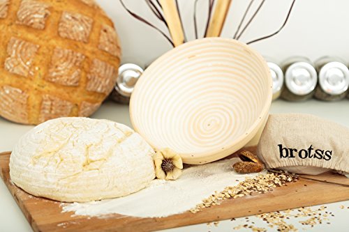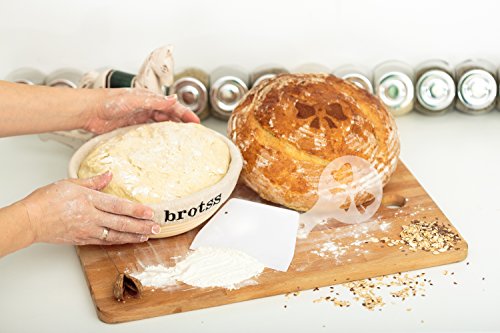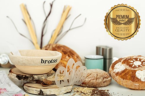 BROTSS GENUINE PACKAGE CONTENT – Rattan Bread Proofing Basket; Bread Lame Scoring Tool with cover; Dough Scraper; Cloth Liner; 10(ten) Different Design Patterns; Digital eBook. This perfect gift for you or for your family and friends will make your bread surprise every time, your loved ones