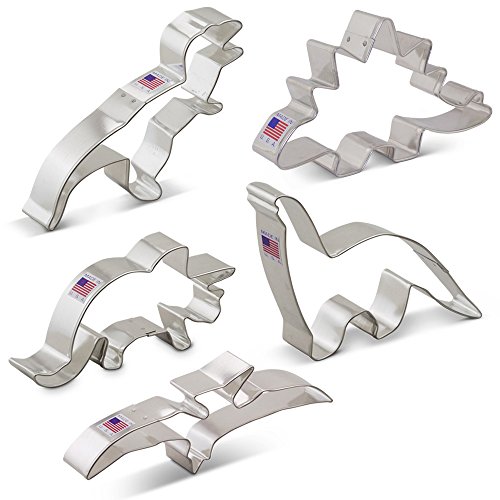Ann Clark Cookie Cutters 5-Piece Dinosaur Cookie Cutter Set with Recipe Booklet, Triceratops, Stegosaurus, T-Rex…