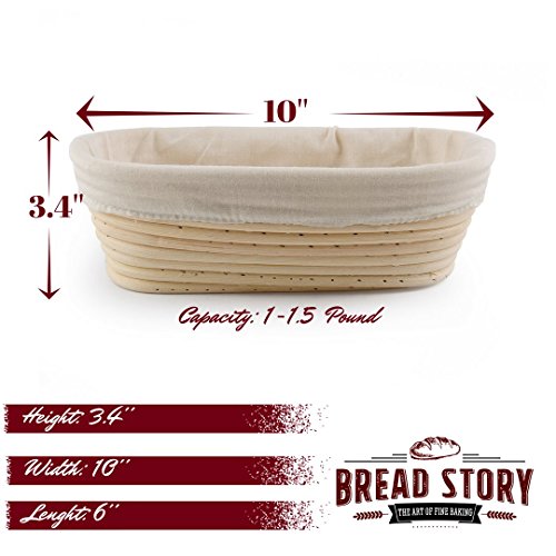 ✔ BEST BREAD BAKING KIT AVAILABLE – Perfect for bread baking lovers, BREAD STORY’S OVAL PROOFING BASKET SET is for professional and amateur bakers – Works for Proofing, Banneton, or Brotform baking techniques – The bread set includes a large oval bowl with a removable cloth liner, ebook on baking sourdough bread, baking class discount, instructions, and future coupon to use – Dimensions are ten inches long, six inches wide, and almost four inches tall;
