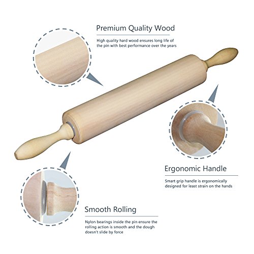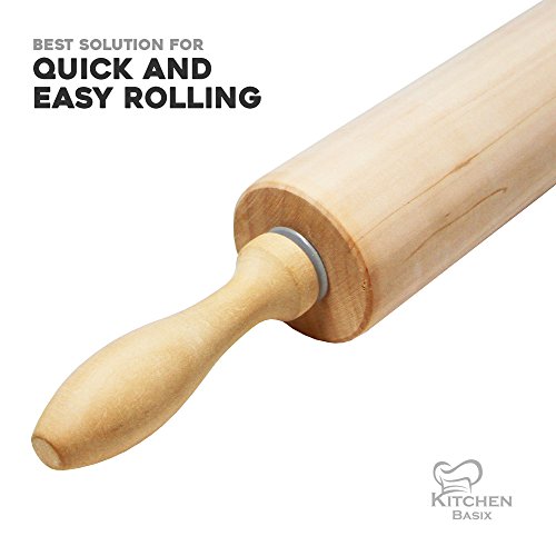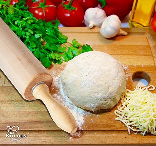 K BASIX Rolling Pin – Classic Wood – Professional Dough Roller – Used by Bakers & Cooks for Pasta, Cookie Dough, Pastry…