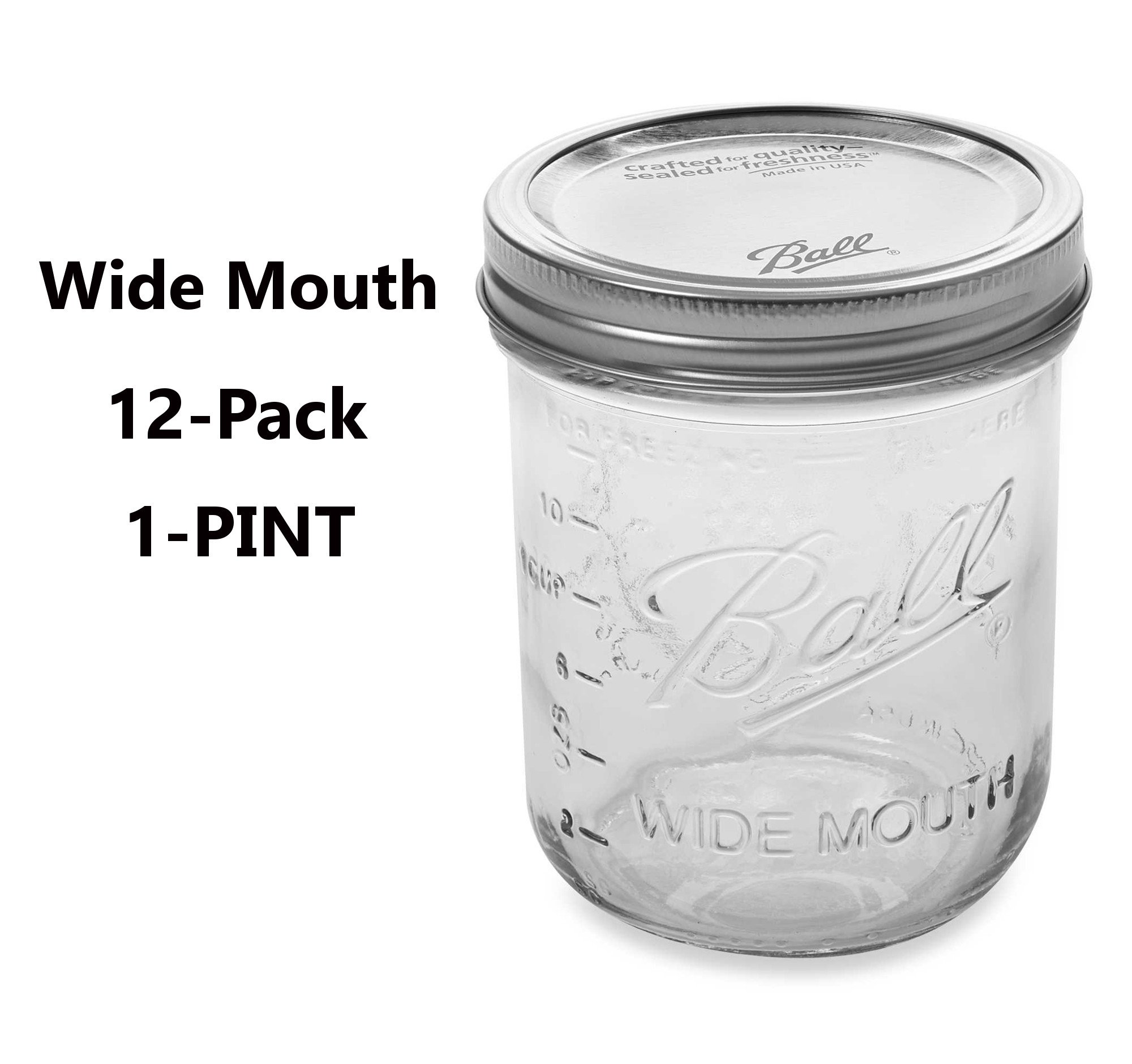 12-Pack Ball Wide Mouth 1-Pint Glass Canning Jars Perfect For Preserving Jams, Sauces, Salsas, Vegetables, Fruits & More…