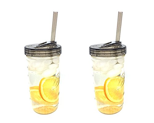 2 Glass Mason Drinking Jars with 2 Sip and Straw Lids Regular Mouth (2, 32oz)