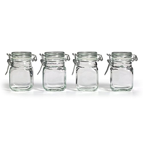 3 1/4″ Square Glass 3oz Jar with Hinge Glass Lid for Home Kitchen, Arts & Crafts Projects, Decoration, Snack Foods and Sauces (4 Pack) by Super Z Outlet