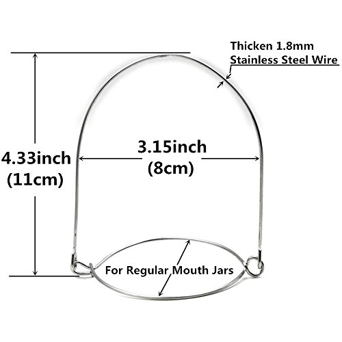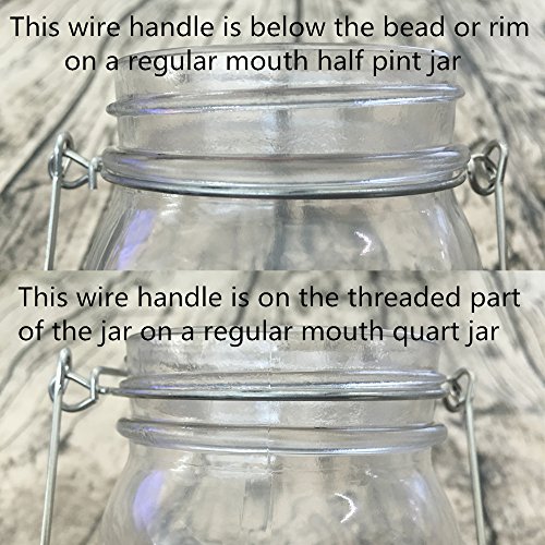 Includes 6 natural colored Mental wire handles for Regular Mouth (2 3/8″ internal diameter) Mason, canning jars. Will fit almost any jar on the threaded part, and some jars below the bead or rim. Scroll down to “Product Description” for a list of jars we have tested.