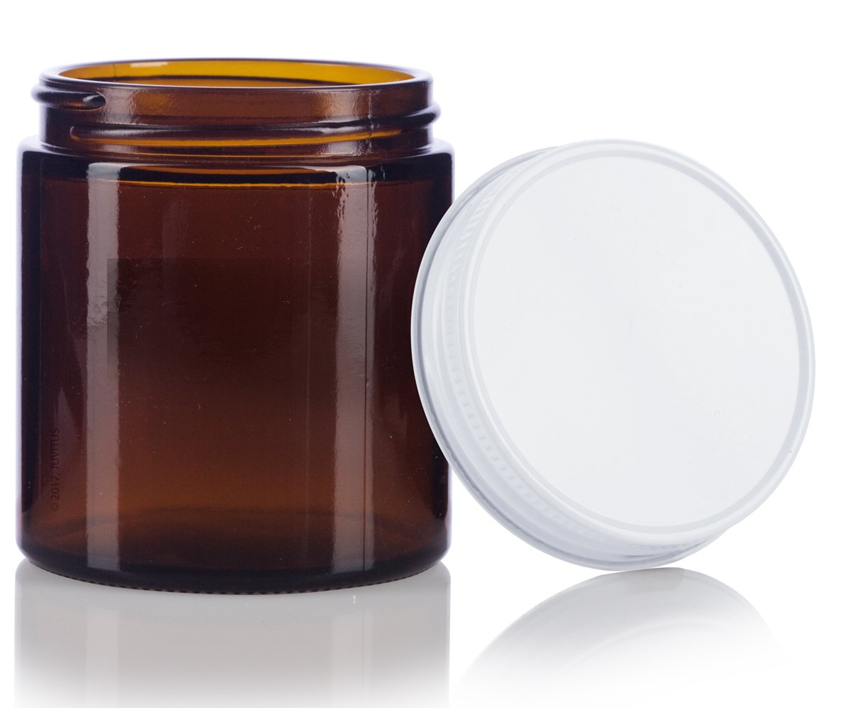 Amber Thick Glass Straight Sided Jar with White Metal Airtight Lid – 4 oz / 120 ml (12 pack)