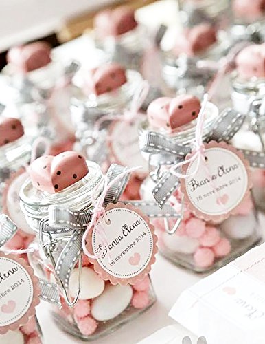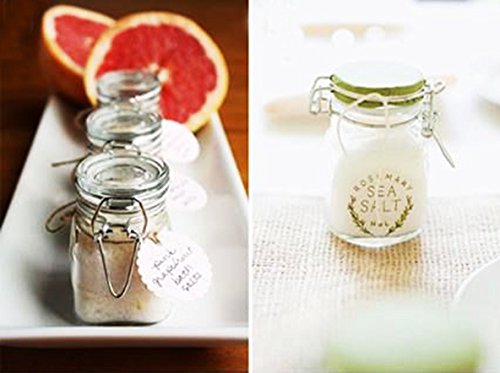 Beautiful set of glass spice canning jar with rubber seal and hinge. Air tight and Leak proof. 3″ tall and 2″ wide with an opening of 1-3/8″ Popular for weddings, catered events, and personal use