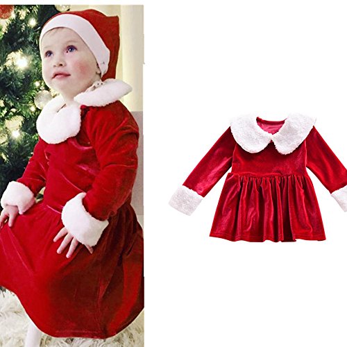 page title icon Christmas Long Sleeve Fur Neck Dress Outfits Clothes for Newborn Infant Girls