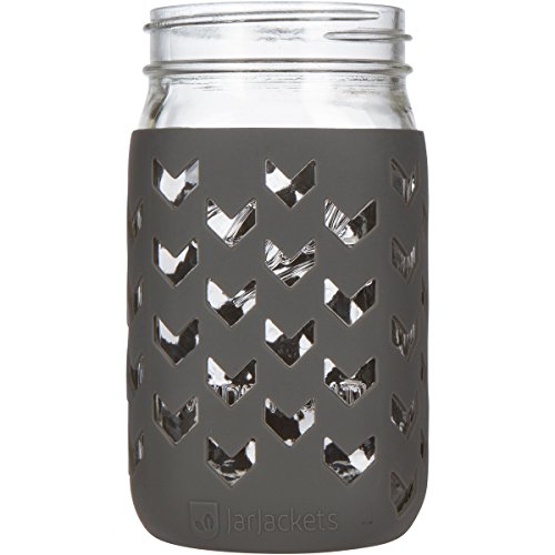 JarJackets Silicone Mason Jar Sleeve – Fits 32oz (1 quart) WIDE-Mouth Jars … (1, Charcoal)