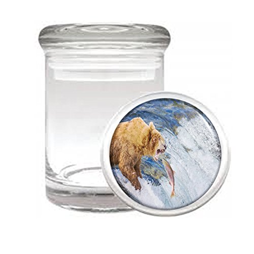 Medical Glass Stash Jar Alaska Scenic Sights S7 Air Tight Lid 3″ x 2″ Small Storage Herbs & Spices