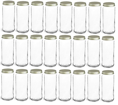 Nakpunar 16 pcs 8 oz Glass Measurement Paragon Jars with Gold Lids – Wide Mouth Bottle (16, 8 oz Measurement (Gold))