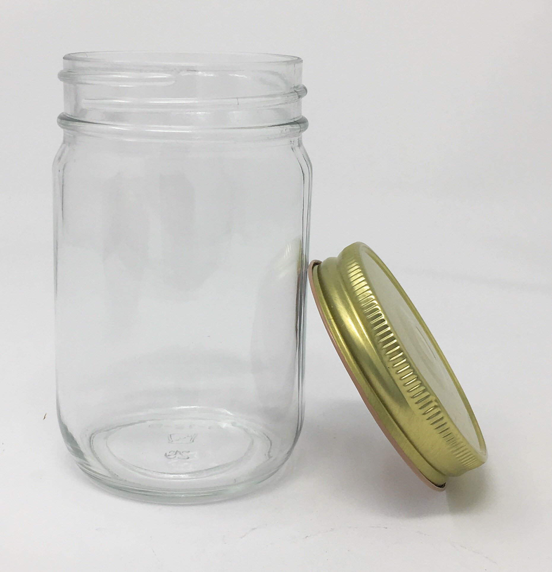 Pint (16 oz) Old Fashioned Glass Jars with Gold Lids by Packaging For You 12 pack