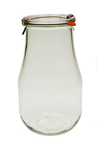 Weck 739 – 2 1/2 L Tulip Jar. Store foods in classic style with this distinctive glass jar embossed with Weck’s famous strawberry logo. Jars are stackable for space-saving storage and feature wide mouths for easy filling. BPA free. Includes: 2 Jars, 2 glass lids, 2 rings & 4 clamps. Height: 9 1/2″ Opening: 3 7/8″ Volume: 91.3 fl oz. Dishwasher and microwave safe.