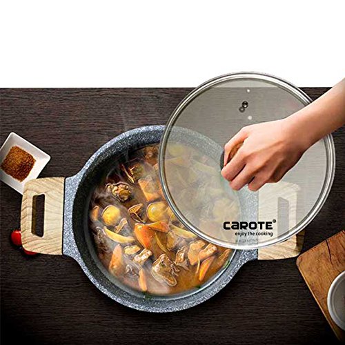 Carote 4.3 Quart Casserole Dish with Lid, Nonstick Cast Aluminum Dutch Oven, Stockpot with Glass Cover…