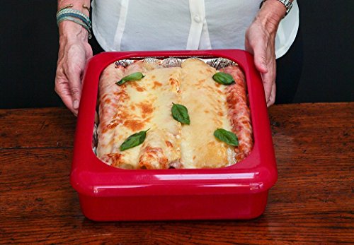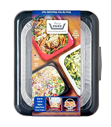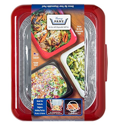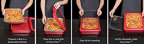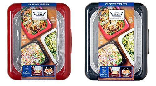 Fancy Panz FPAN2SET Portable Casserole Serveware 2-Piece Set, Dish Pan with Cover for Indoor and Outdoor Use, Red and Charcoal Color, Bonus Foil Pan Included is masterfully and proudly designed and manufactured in the US. This unique casserole serveware is an inventive and original answer to a widespread issue with potlucks and proves to be the ideal medium to have your disposable foil pans dressed up and moved around. Fail pans are a common solution, but they greatly lack in stability, appearance, and the stackability for transportation. Aesthetically and practically pleasing, Fancy Panz is the perfect quick fix for these inconveniences, and it is exclusively available from us a 2-piece set in Red and Charcoal color, with bonus foil pan included. Works like a charm, very simple: open its frame and put your foil pan (11-3/4 X 9-3/8 X 2-9/16 inch) with your appetizing dish into the Fancy Panz, then close the frame, snap the convenient clear lid on, and you are good to go! Transport your favorite lasagnas, casseroles, desserts, salads, meat courses – anything hot or cold (please, cool those hot dishes to 200 degrees before placing them in your Fancy Panz). Forget about those annoying accidents and messes during transportation and enjoy the real potluck convenience on the go. Fancy Panz are guaranteed to be BPA-free and top-shelf dishwasher safe. Fancy Panz are designed to be used with a typical half size disposable pan which are approximately 11 3/4 x 9 3/8 x 2 5/16 or a baking/lasagna pan, approximately 11-3/4 x 9-3/8 x 1-1/2. Manufacturers sizes can vary.